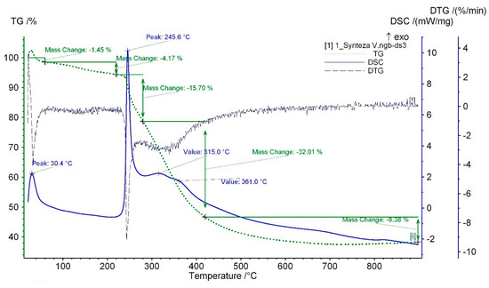 Thermal analysis TG-DTG-DSC of isopropanol-NaOH sample.