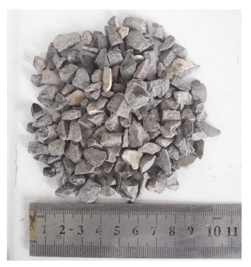 The particle size distribution of slag is similar to that of Portland cement. Chemical and physical properties of water glass used are shown in Table 2, which were provided by the supplier. Industrial grade sodium hydroxide with purity of 99% from Yihua Chemicals Co., Xining, China, was used in this study. AR grade calcium gluconate from Sinopharm, Shanghai, China, was used as retarder in this study. Limestone coarse aggregate in the size of 4.75–9.5 mm from Wuhan, China, was used in this study (Figure 2), and the properties are shown in Table 3, which were tested according to Chinese standard GB/T 14685-2011 [35].