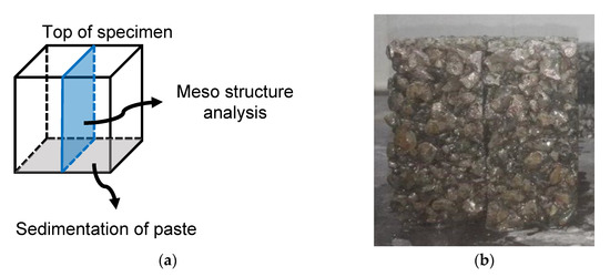 (a) The diagram of surfaces for sedimentation of paste and mesostructure analysis, and (b) the real specimen after cutting.