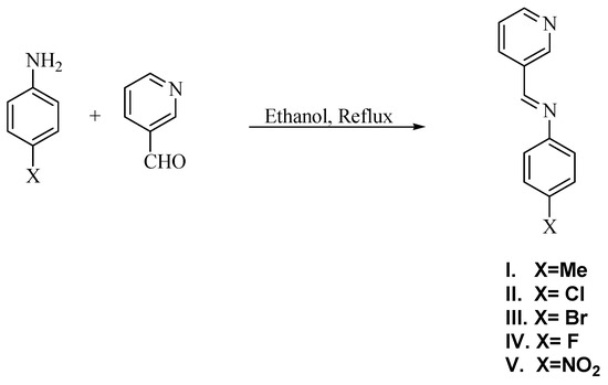 The existence of the prepared supramolecular hydrogen-bonded complexes was revealed by FT–IR (Figure 1a–c). The measurements were performed for the free acids (Cn) and Schiff bases (I–V), as well as for their corresponding supramolecular complexes [(I–V)Cn].