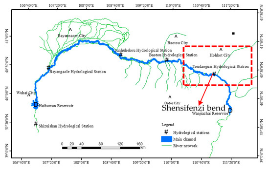 The Inner Mongolia reach of the Yellow River and the Shensifenzi bend location.