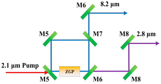 - Liu, G.Y.; Chen, Y.; Yao, B.Q.; Yang, K.; Qian, C.P.; Dai, T.Y.; Duan, X.M. Study on long-wave infrared ZnGeP2 subsequent optical parametric amplifiers with different types of phase matching of ZnGeP2 crystals. Appl. Phys. B 2019, 125, 233. [Google Scholar] [CrossRef]