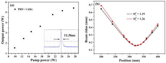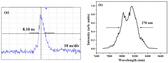 - Qian, C.P.; Yu, T.; Liu, J.; Jiang, Y.Y.; Wang, S.J.; Shi, X.C.; Ye, X.S.; Chen, W.B. 5.4 W, 9.4 ns pulse width, long-wave infrared ZGP OPO pumped by Ho:YAG MOPA system. IEEE Photonics J. 2021, 17. in press. [Google Scholar]