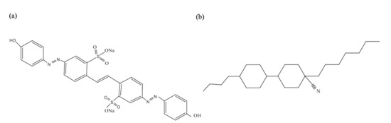 Chemical Structure of the materials (a) Photoresponsive azo-dye Brilliant Yellow, (b) liquid crystal CCN-47.