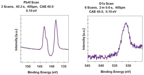 - Zingg, D.S.; Hercules, D.M. Electron spectroscopy for chemical analysis studies of lead sulfide oxidation. J. Phys. Chem. 1978, 82, 1992. [Google Scholar] [CrossRef]