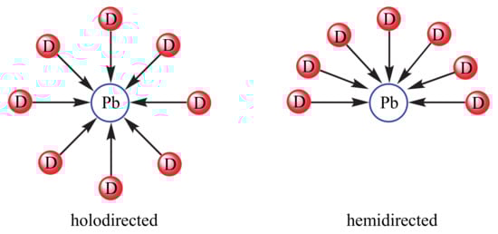 - Shimonni-Livny, L.; Glusker, J.P.; Bock, C.W. Lone Pair Functionality in Divalent Lead Compounds. Inorg. Chem. 1998, 37, 1853–1867. [Google Scholar] [CrossRef]