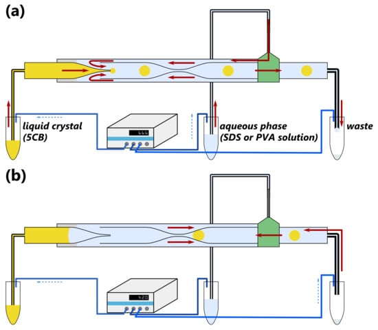 - Schanen, A. Microfluidics for Measuring the Interfacial Tension of Liquid Crystals. Master’s Thesis, University of Luxembourg, Luxembourg, 2019. [Google Scholar]