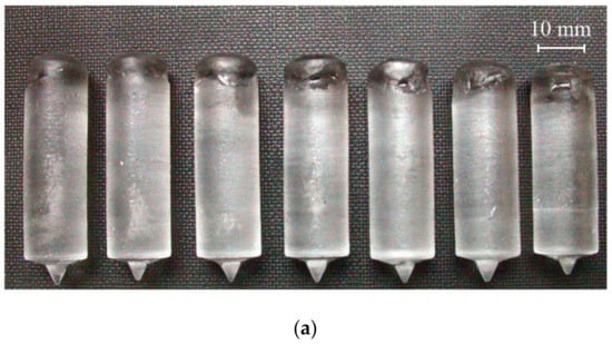 To refine the composition of the temperature maximum on the melting curves, Ca1–xYxF2+x (0 < x ≤ 0.14) crystals with a diameter of 12–15 mm and a length of 50–55 mm were grown (Figure 4).