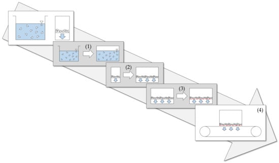 The focus of the paper lies on the transfer of a multi-stage batch process into its quasi-continuous form. In contrast to the conventional production method, the complete process chain (crystallization, aging and solid–liquid separation) is carried out on an integrated plant schematically shown in Figure 1.