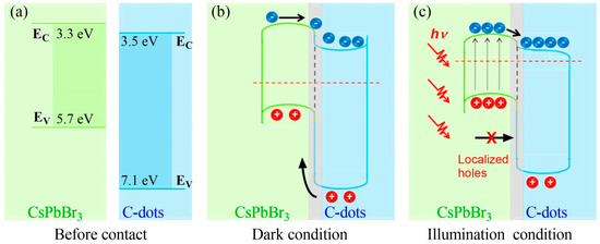 | C-dots/perovskite | 0.0001 | 0.15 | 1.5 × 103 | 1.09 | 1.593 × 1013 | 1.318/1.342 |