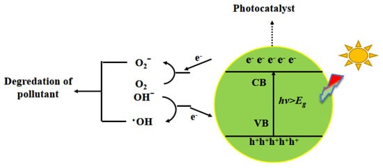 As shown in Figure 1, the photocatalytic reaction occurs when g-C3N4 absorbs photons not less than the bandgap energy. The whole catalytic reaction is divided the following into four processes [45,46].