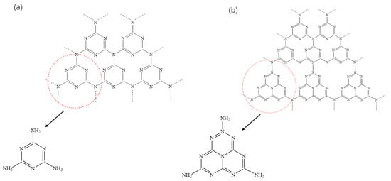 (a) Triazine ring unit of g-C3N4; (b) The heptadazine ring unit of g-C3N4.