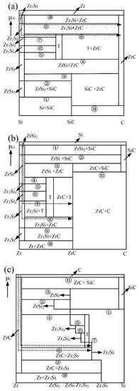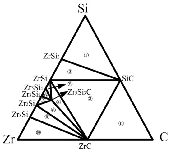 | No. | Three Phase Equilibrium Area | μZr/kJ·mol−1 | μSi/kJ mol−1 | μc/kJ mol−1 |