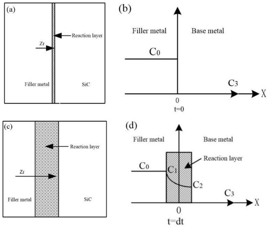 - In the brazing process of Zr-Cu filler metal and SiC ceramic, the main reaction is the interface reaction of the active element Zr and the SiC ceramic and the interface products are mainly ZrC and Zr2Si, which is consistent with the thermodynamic calculation. The potential stability phase diagram of the Zr-Si-C ternary system was used to explain the possible diffusion path of elements in the process of product formation.