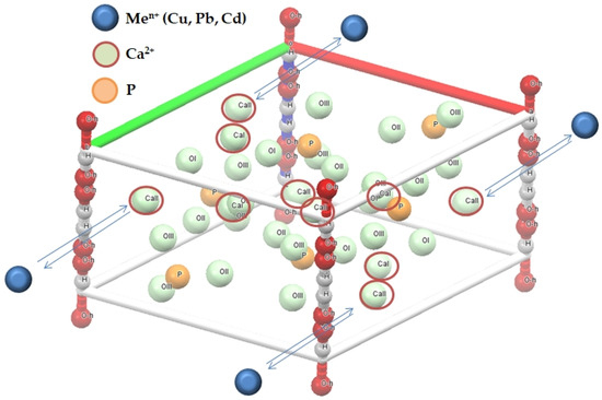 Different approaches for the synthesis of Ca/P phases are presented in the literature, including physical techniques (different performances of spraying, sputtering, evaporation, or deposition) and chemical methods (sol–gel, immersion coating, hot-isostatic pressing, electrophoretic deposition, electrochemical deposition, (micro)emulsion routes, dip coating, or sintering) [24,25,26,27]. Different ratios of the crystalline/amorphous phase of HAp coatings can be achieved due to the different methods of synthesis employed in the synthesis of HAp [28,29]. The chemical composition, structure, and property of the amorphous phase are dependent on the structure of its clusters. The formation of amorphous calcium phosphate and its subsequent transition to crystalline hydroxyapatite lead to the formation of a cluster structure [30] and the possible formation of a coordination complex of HAp and heavy metals.