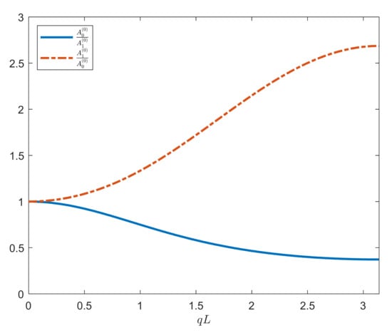 if we set . In this case, takes the amplitude of the outer mass as a reference and dominates the trend of optic mode.