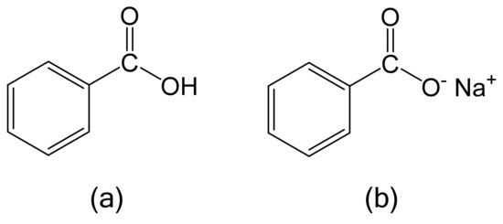 The molecular structure of (a) benzoic acid and (b) sodium benzoate.