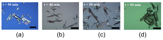 - Patel, M.A.; Nguyen, B.; Chadwick, K. Predicting the Nucleation Induction Time Based on Preferred Intermolecular Interactions. Cryst. Growth Des. 2017, 17, 4613–4621. [Google Scholar] [CrossRef]