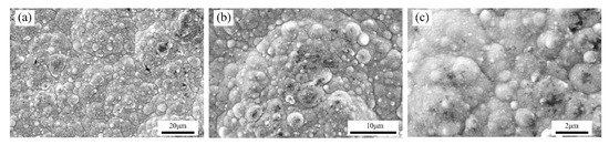 Surface morphologies of basic coating with different magnification: (a) 2500× (b) 10,000× (c) 30,000×.