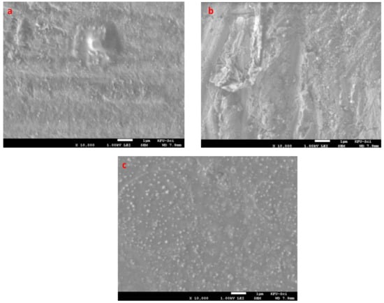 SEM images of pure PVA (a), PVA/LiCl film (b) and PVA/AgNO3 film (c).