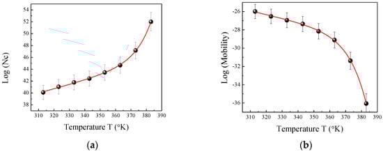 Additionally, the activation energy for charge carrier migration Em can be determined using the following equation [,];