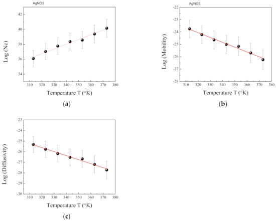 The logNi (a), logµi (b) and logDi (c) for PVA/AgNO3 films as a function of temperature.