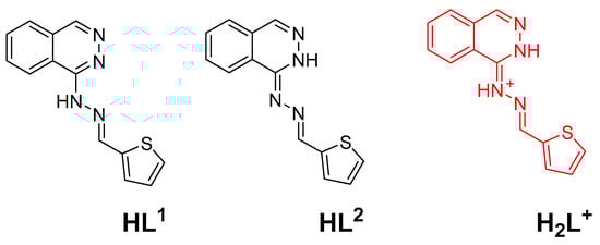 Geometry optimizations of the possible tautomers of the ligand HL and its protonated form (Figure 2) were performed using the MPW1PW91/TZVP method with the aid of Gaussian 09 software [60]. All frequencies have positive values, which indicated real energy minimum structures. The results of the calculated thermodynamic parameters were used to predict the most stable tautomer and to calculate the proton affinity of the ligand HL.