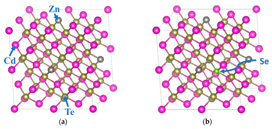- Carvalho, A.; Tagantsev, A.; Öberg, S.; Briddon, P.R.; Setter, N. Intrinsic defects in CdTe and CdZnTe alloys. Phys. B. 2009, 404, 5019–5021. [Google Scholar] [CrossRef]