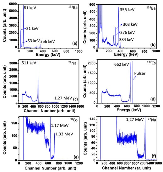 Penetrating radiations such as x- and γ-rays are indispensable for medical imaging through techniques such as computed tomography (CT), positron emission tomography (PET) or X-ray radiography, for security screening at the port of entries, for monitoring and safeguarding of special nuclear materials, to name a few [1,2]. At the heart of the imagers or scanners used in these applications, there is usually an x-/γ-ray detector with high spatial and energy resolution that allows direct conversion of radiation into electron-hole pairs [3,4]. For field deployability of such detectors, compact and room-temperature operation are of prime requirements. Conventional high resolution gamma-ray detectors such as HPGe and Si(Li) detectors require bulky cryogenics attachment for cooling due to their low room-temperature bandgap energies ((Si) = 1.11 eV and (Ge) = 0.67 eV). Moreover, the photoelectric absorption coefficient for x-/γ-ray interacting with matter varies with where is the density of the detecting material [5]. Hence, detector materials with a lower atomic number (Z) such as silicon ( imply a lower peak-to-Compton background ratio.