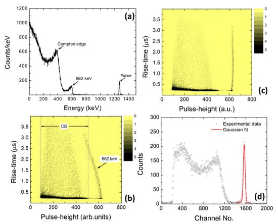 Although the application of digital correction methods had been reported abundantly for CZT and similar detectors [61,62,63,64], the only digital correction in CZTS gamma-ray spectra based on a biparametric correlation method has been reported by Chaudhuri et al. [21]. Figure 17a shows the gamma-ray PHS obtained using a planar CZTS detector exposed to a 137Cs source emitting 662 keV gamma rays.