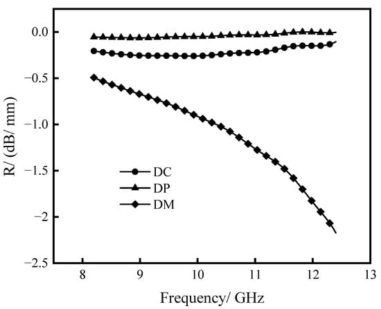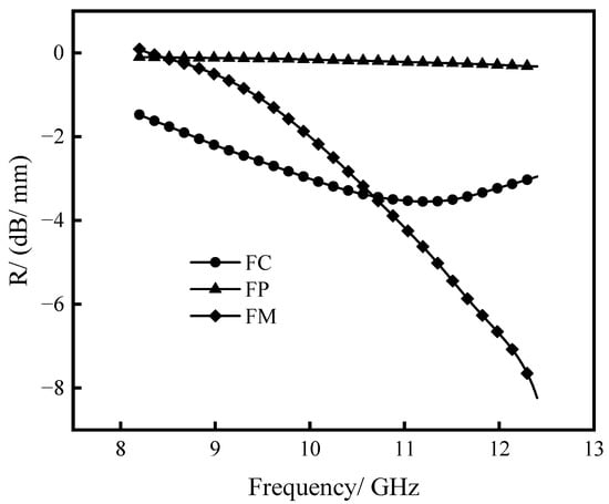 The reflection loss per unit thickness of single-layer impregnated nonwovens varies with the electromagnetic frequency, as shown in Figure 6.