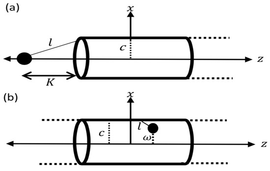 Here, we determine the interaction energy of an iron atom as it enters CNT and BNNT; the tubes are assumed to be in a semi-infinite cylinder. With reference to the Cartesian coordinate system , the tube of radius c has the coordinates , where and , and the coordinates of the Fe atom are given as . Thus, the distance l between the atom and a typical point on the tube is given by , and the total interaction of the Fe atom entering the tube is given by