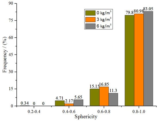 The internal concrete defects mostly exist in the form of pores and cracks. Through consulting references [35], it can be found that the cracks and pores can be distinguished according to the size of the sphericity. According to the Formula (1), the maximum sphericity is 1, and the corresponding shape is a sphere. The sphericity of other shapes is less than 1. The closer shape is to a sphere, the greater the sphericity. For example, the sphericity of a 20hedron can reach 0.939, but the sphericity of the tetrahedron is 0.671. Combined with this knowledge of geometry, the surface area of the sphere is the smallest when the volume is the same. For concrete, the smaller the pore surface area is, the higher the density and strength of concrete will be.