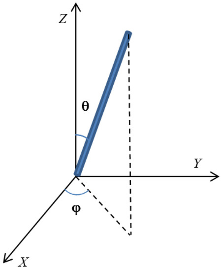 In Figure 9, is the polar angle, which represents the angle between the fiber and Z-axis ranging from 0–90°. And φ is the azimuth angle, which represents the angle between the projection of the fiber on the horizontal plane and the positive axis of X-axis ranging from 0–360°.