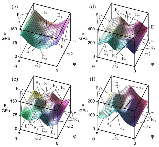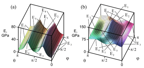- Cazzani, A.; Rovati, M. Extrema of Young’s modulus for cubic and transversely isotropic solids. Int. J. Solids Struct. 2003, 40, 1713–1744. [Google Scholar] [CrossRef]