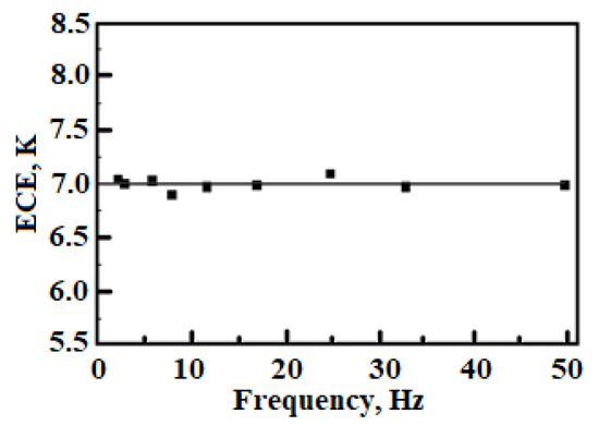 During the experiments, it was shown that the value of the ECE did not depend on the frequency of the external driving force (Figure 7).