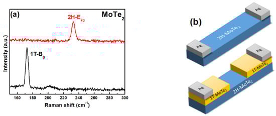 - Sung, J.H.; Heo, H.; Si, S.; Kim, Y.H.; Noh, H.R.; Song, K.; Kim, J.; Lee, C.S.; Seo, S.Y.; Kim, D.H.; et al. Coplanar semiconductor–metal circuitry defined on few-layer MoTe2 via polymorphic heteroepitaxy. Nat. Nanotech. 2017, 12, 1064–1070. [Google Scholar] [CrossRef]
