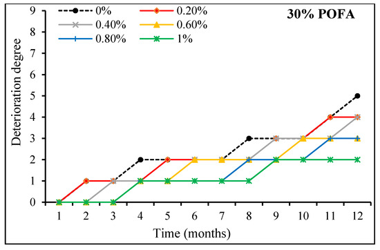 - Adding WPFT fibers and POFA to concrete specimens improved their sulfate resistance. Due to the bridging action, the presence of WPFT fibers reduced expansion and crack development, whereas the control specimen expanded due to the high calcium oxide content in the sulfate solution. Consequently, a concrete mixture containing 0.4% WPFT fibers and 30% POFA exposed to sulfate has excellent potential for reducing compressive strength loss to only 3.7 MPa.
