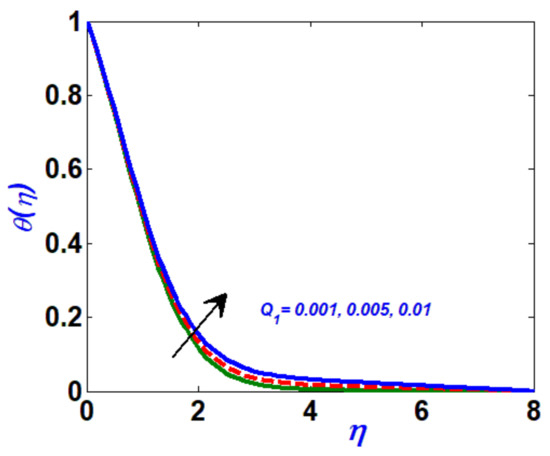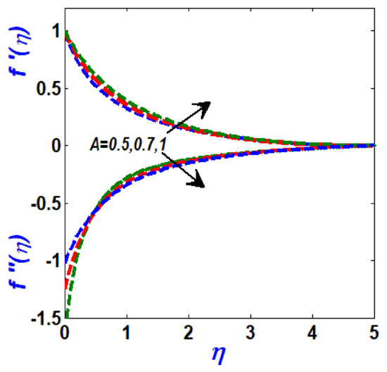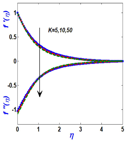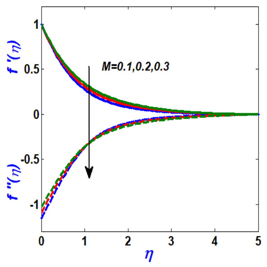 Equations (12)–(26) are solved numerically through MATLAB function bvp4c, setting the tolerance level at . The scheme discussed above is required by MATLAB built in solver bvp4c to solve boundary value problems [28]. We defined three MATLAB functions: one for the system of equations, the second for the boundary conditions, and a third for the initial guess to find the numerical solutions of our flow problem.