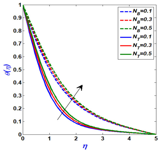 - Increase in parameter and number result in the upsurge of temperature, whereas opposite results are seen while increasing the parameters , and .