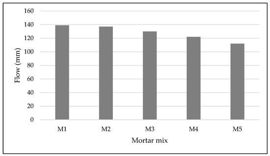 Flow table test results of mortar mixes.