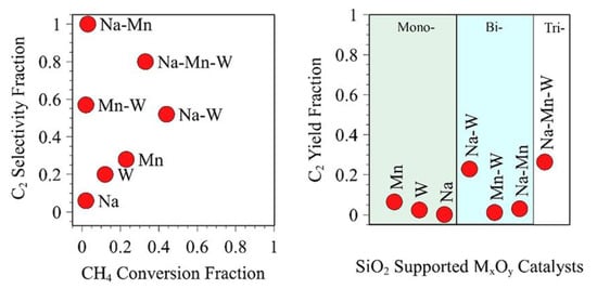 - Wang, J.; Chou, L.; Zhang, B.; Song, H.; Zhao, J.; Yang, J.; Li, S. Comparative study on oxidation of methane to ethane and ethylene over Na2WO4–Mn/SiO2 catalysts prepared by different methods. J. Mol. Catal. A Chem. 2006, 245, 272–277. [Google Scholar] [CrossRef]