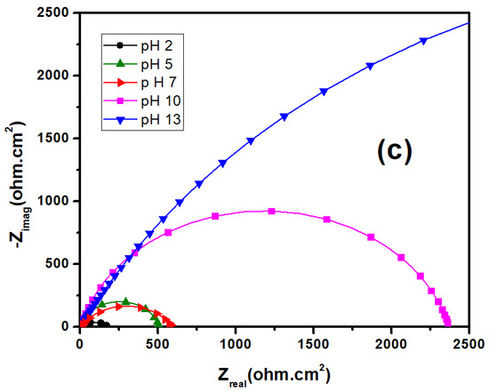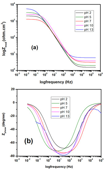 - Overall impedance values are increased with the higher pH values, which improving the corrosion resistance, and same trend was confirmed by potentiodynamic polarization curves, too.