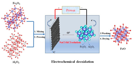 Xu, Y.; Yan, H.; Jing, Z.; Qi, X.; Li, H.; Liang, J. Effect of Fe2O3 on Electro-Deoxidation in Fe2O3-Al2O3-NaCl-KCl System. Crystals 2021, 11, 1026. https://doi.org/10.3390/cryst11091026