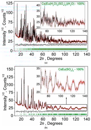 - Safianov, I.N.; Kuz’min, E.A.; Iskhakova, L.D.; Ilyukhin, V.V.; Belov, N.V. Crystal structure of double Cs,La-sulphate, Cs2SO4·La2(SO4)3·8H2O. Dokl. Akad. Nauk. SSSR 1975, 220, 346–348. [Google Scholar]
