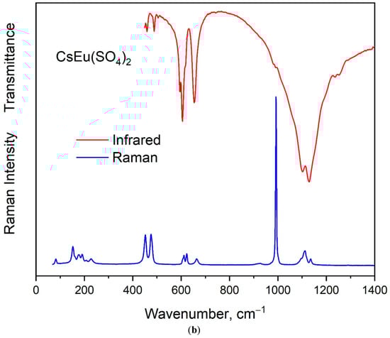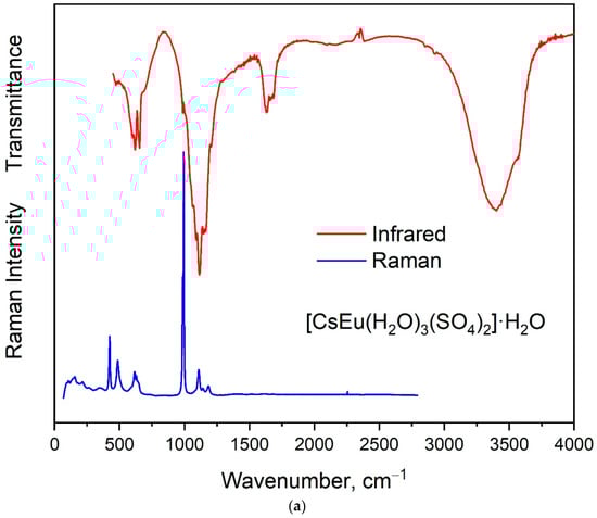 Denisenko, Y.G.; Molokeev, M.S.; Oreshonkov, A.S.; Krylov, A.S.; Aleksandrovsky, A.S.; Azarapin, N.O.; Andreev, O.V.; Razumkova, I.A.; Atuchin, V.V. Crystal Structure, Vibrational, Spectroscopic and Thermochemical Properties of Double Sulfate Crystalline Hydrate [CsEu(H2O)3(SO4)2]·H2O and Its Thermal Dehydration Product CsEu(SO4)2. Crystals 2021, 11, 1027. https://doi.org/10.3390/cryst11091027