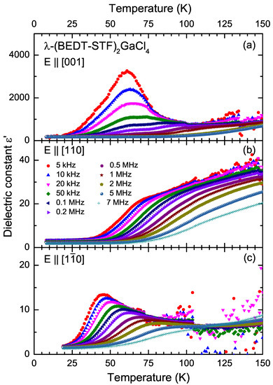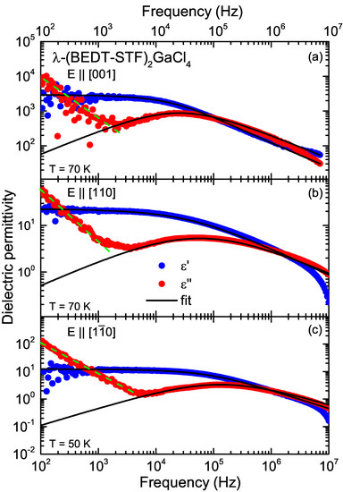 - Lunkenheimer, P.; Loidl, A. Dielectric spectroscopy on organic charge-transfer salts. J. Phys. Condens. Matter 2015, 27, 373001. [Google Scholar] [CrossRef] [PubMed]