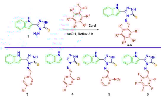 Synthesis of Schiff bases based indole-triazole-3-thione hybrid 3–6.