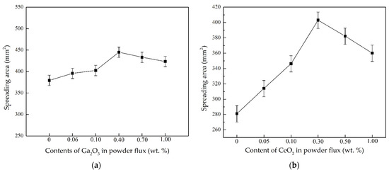 Effects of different oxides on the wettability of AgCuZnSn flux-cored brazing filler metal: (a) Ga2O3 [40]; (b) CeO2 [36].