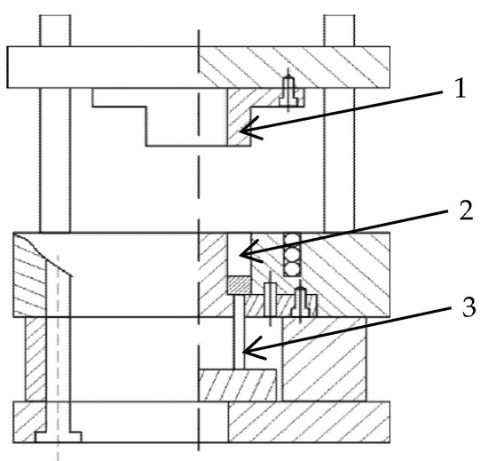 Schematic diagram of hot-pressing mold [79]: 1, convex module; 2, mold cavity; 3, ejection mechanism.